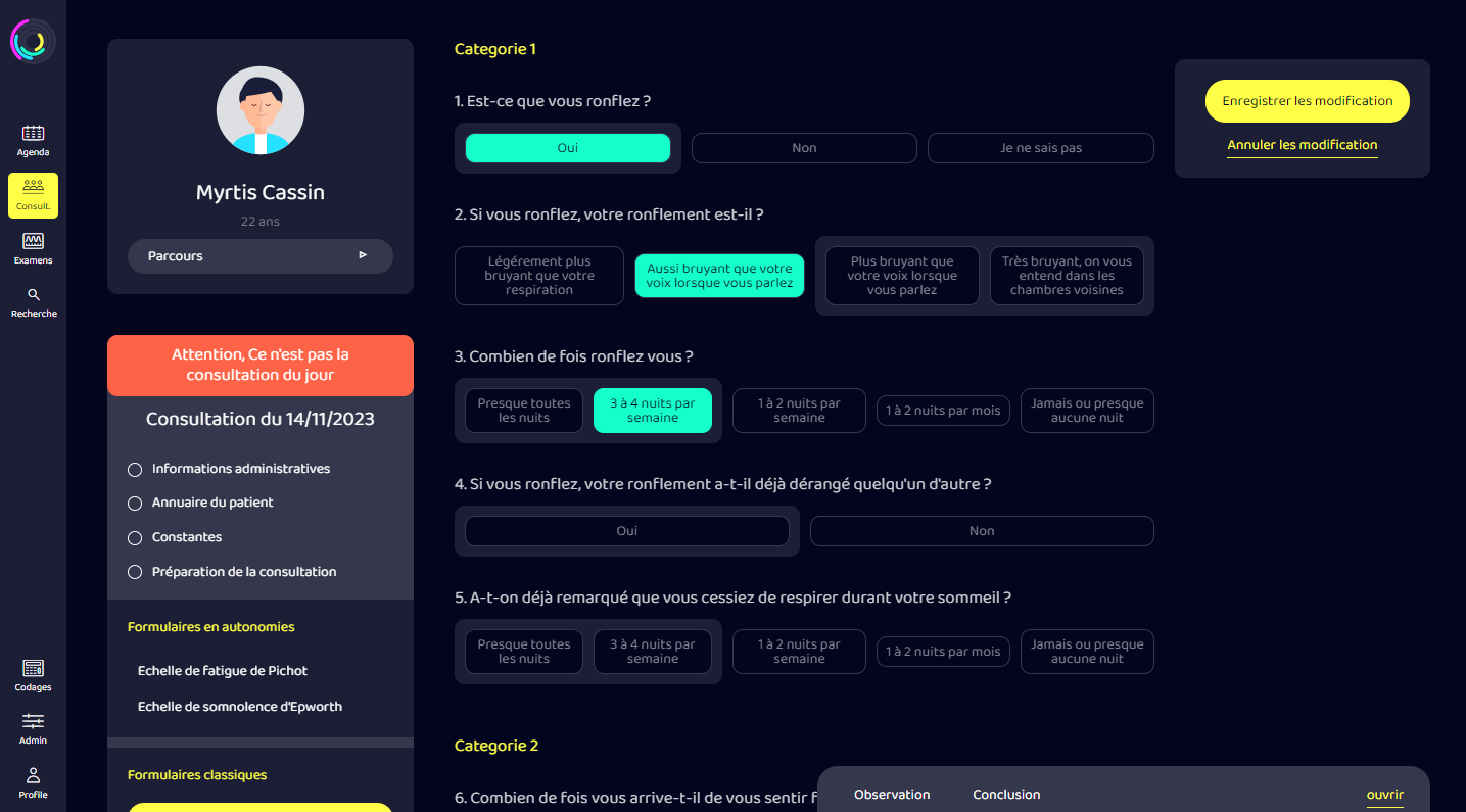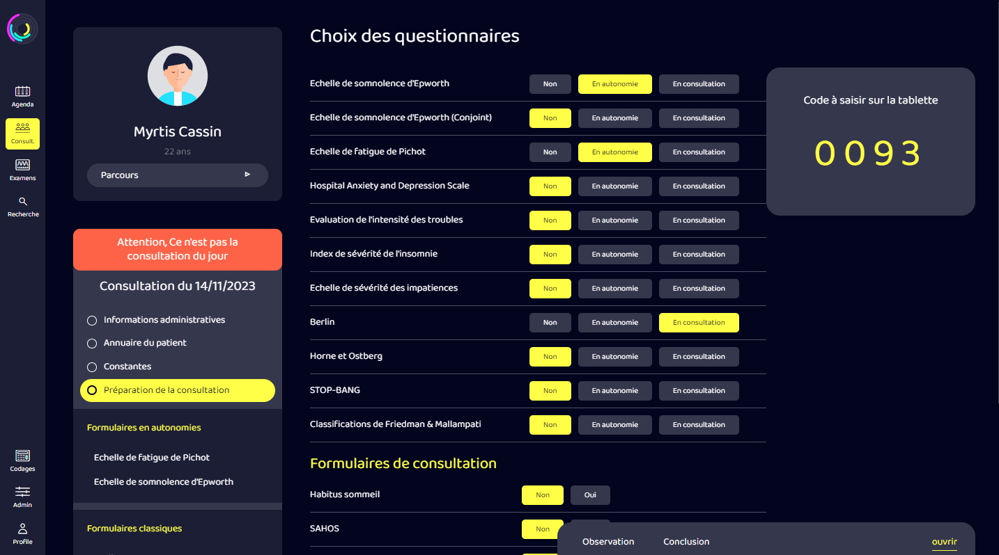 Questionnaires spécifiques avec scorage automatique